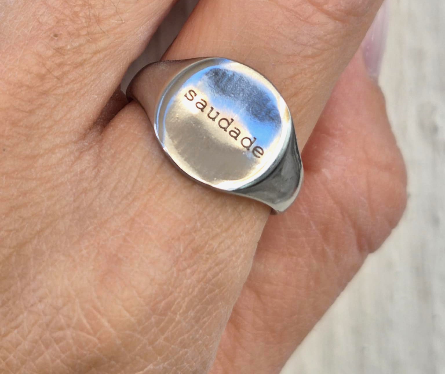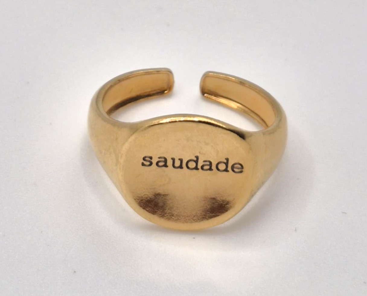 Anel Luna - SAUDADE 16,00 € Desconto de %. IVA incluído. Partilhar Cor Dourado Prateado Comprar Contactar Anel Luna - Saudade: Palavra que só existe na língua portuguesa. Um sentimento que não se traduz. Apenas se SENTE! O anel LUNA é de base arredondada e brilho suave, abraça o dedo com leveza como a LUA que ilumina sem fazer esforço. Feito em aço inoxidável, é resistente, ajustável e perfeito para o uso diário: não escurece nem perde a cor e não causa alergia. A gravação é feita a laser por nós!