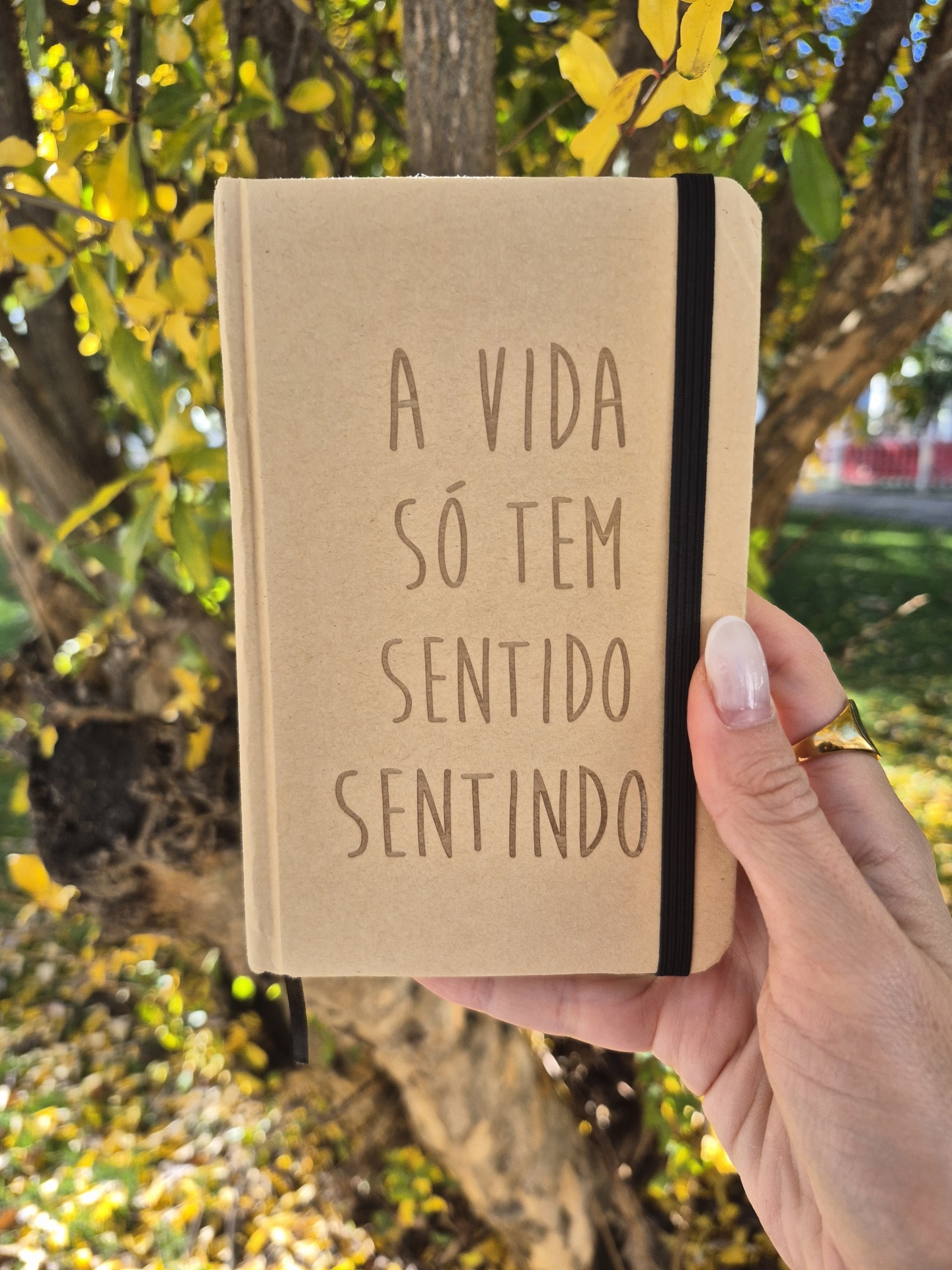 Caderno Sentir A5 13,00 € Desconto de %. IVA incluído. Partilhar Comprar Contactar English: Life only makes sense by feeling. Caderno tamanho A5 de cartão reciclado, 96 folhas de folhas lisas de 80g! Frase autoral gravada a laser por nós! Caderno Sou Alma, perfeito para as tuas anotações, ideias e pensamentos, caderno da gratidão entre infinitas possibilidades de escrita!