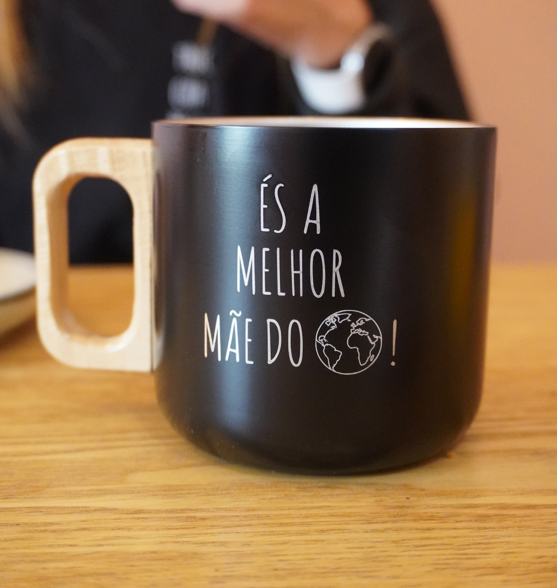 CANECA DIA DA MÃE! 16,00 € Desconto de %. IVA incluído. Partilhar Comprar Contactar És a melhor mãe do mundo! Caneca com arte e gravação a laser feito por nós para presentear esta mulher que é tão especial na tua vida! Feita em aço inoxidável para manter a temperatura da bebida por mais tempo e asa de madeira! 300ml!
