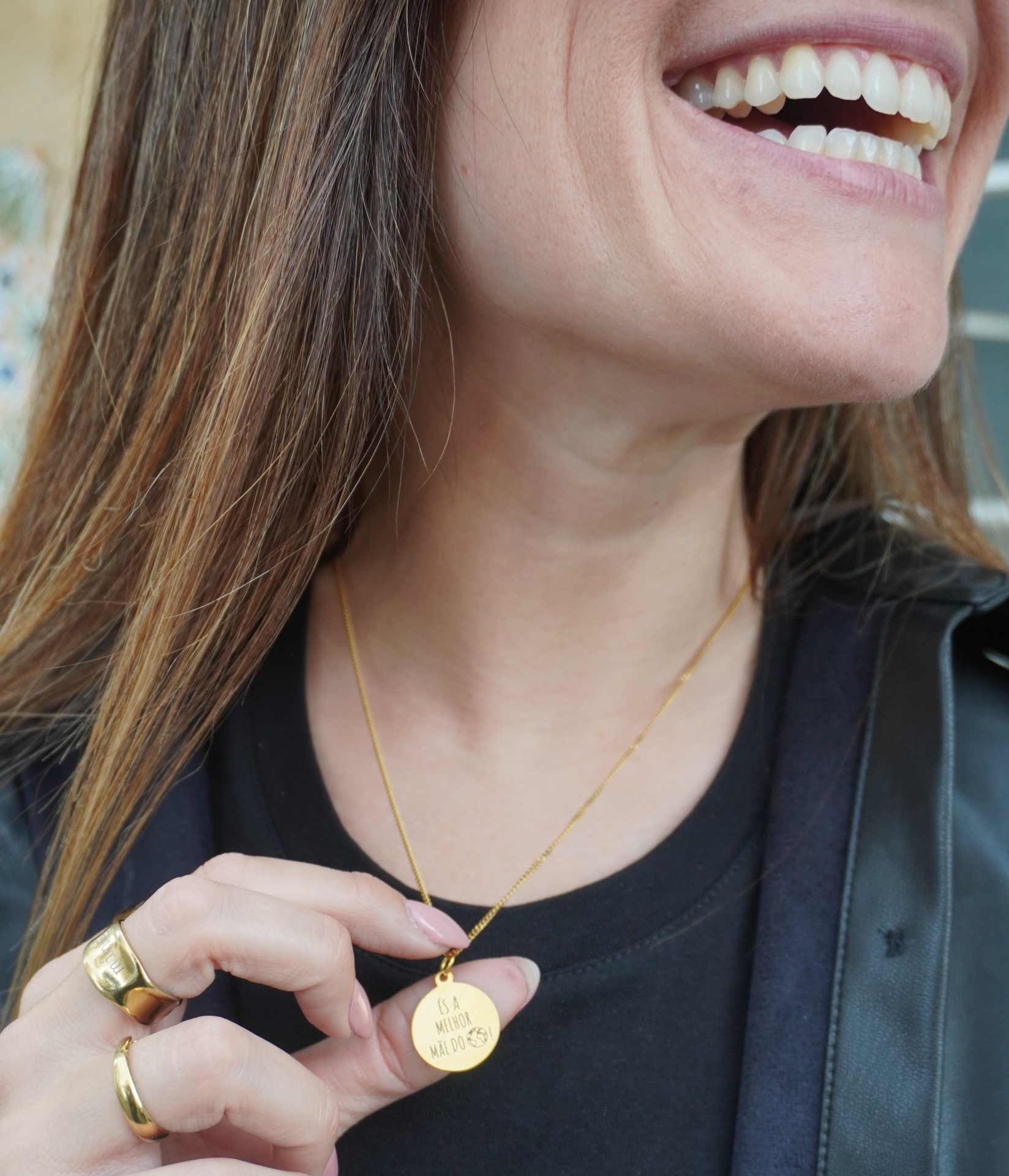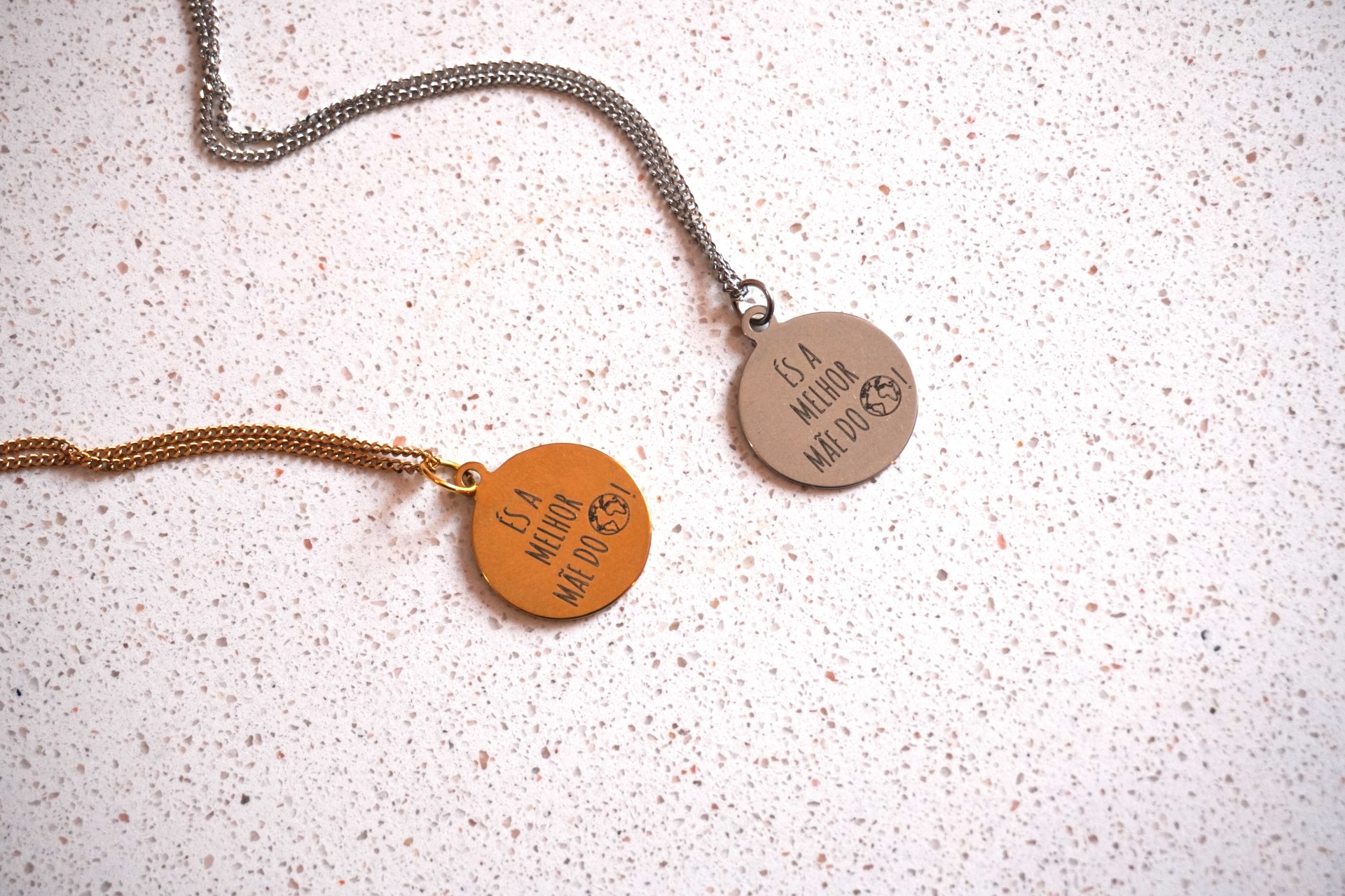 Colar MÃE! 16,00 € Desconto de %. IVA incluído. Partilhar Cor Dourado Prateado Comprar Contactar Um colar cheio de amor e significado para presentear a tua MÃE! O colar é de aço inoxidável e temos na opção dourado e prateado! A arte é autoral e a gravação a laser também feita por nós!