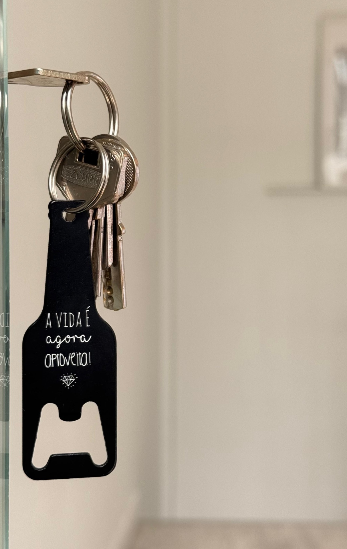 Porta Chaves a vida é agora! 4,00 € Desconto de %. IVA incluído. Partilhar Comprar Contactar Porta Chaves e abridor de cerveja - A vida é agora. Aproveita! Feito em alúminio e gravado a laser por nós com a frase de minha autoria! Perfeito para andar contigo para todo o lado! MEDIDAS: 8,9cm X 3cm