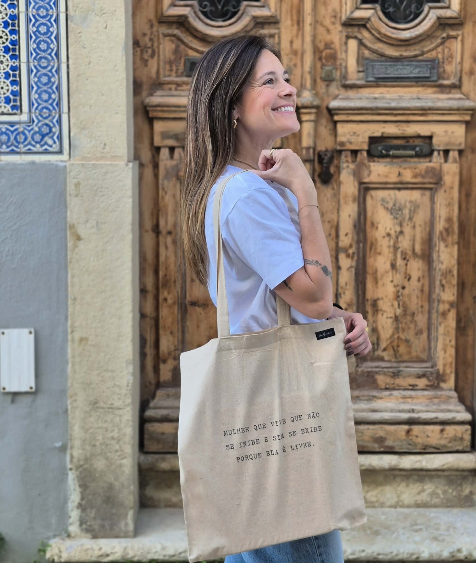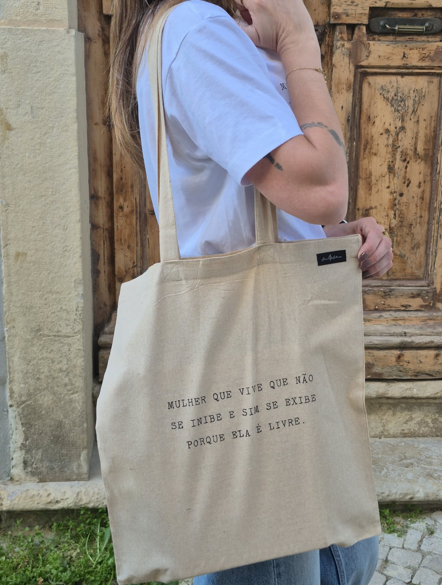 Nosso saco super empoderado! Esse é um trecho do meu poema mulher é livre, e o transformei em estampa!