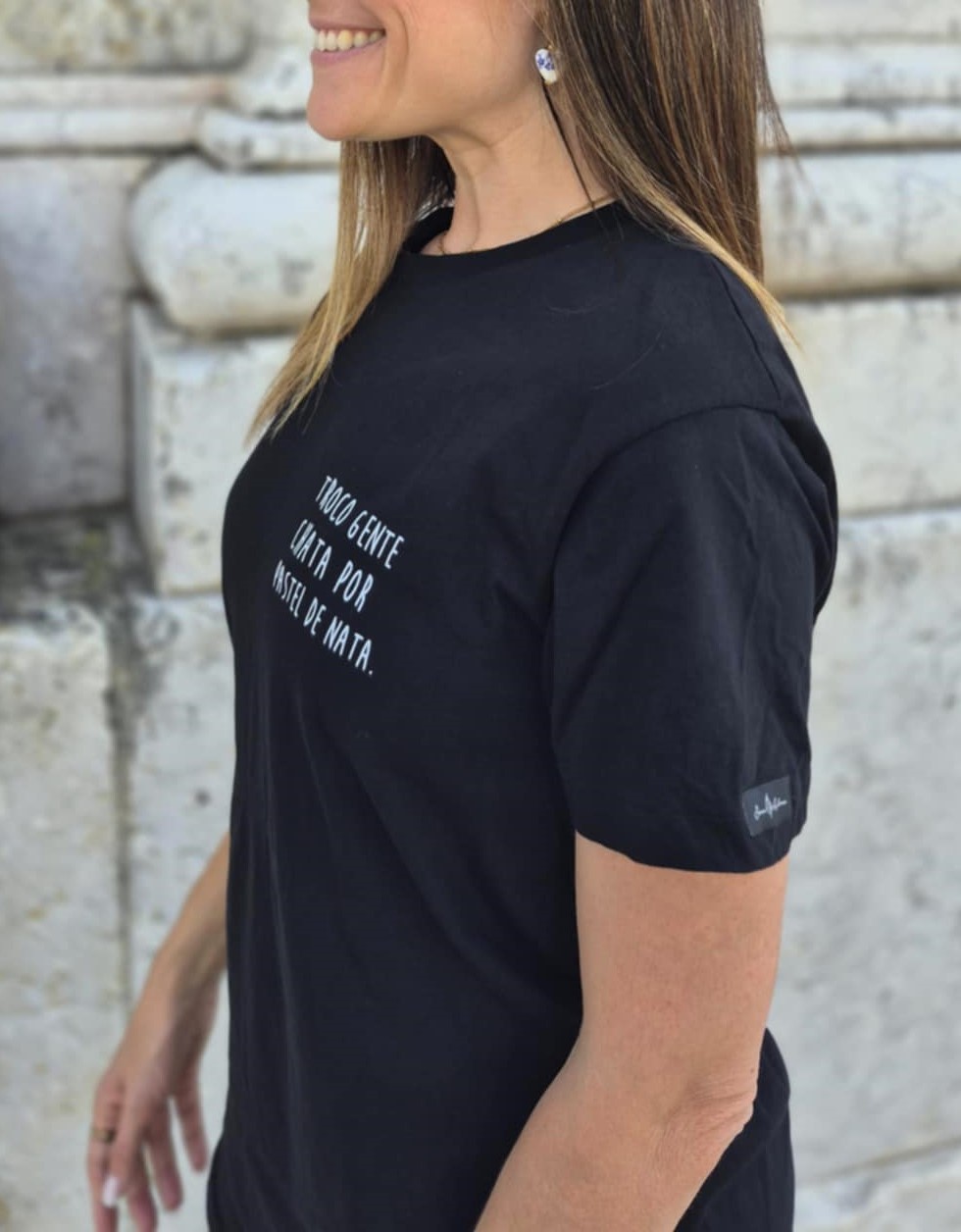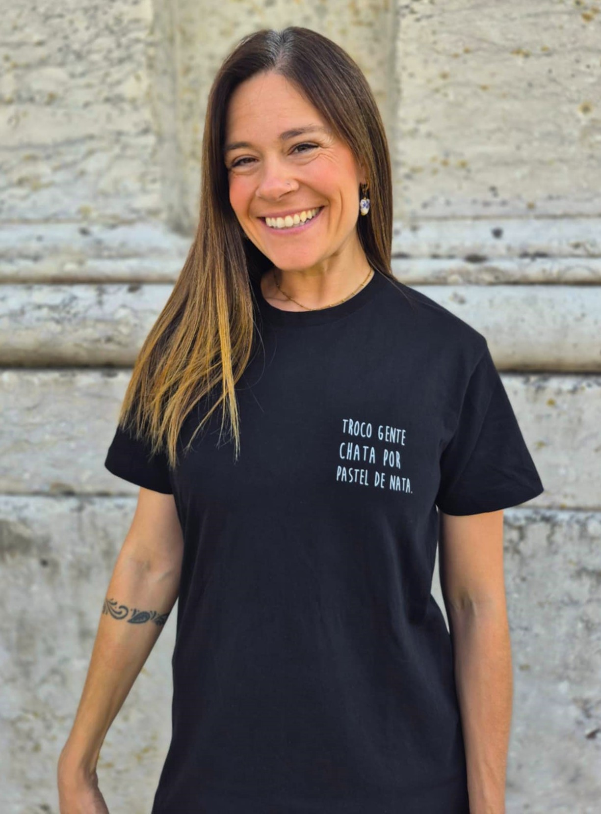 T-shirt unissex Pastel de Nata! 26,00 € Desconto de %. IVA incluído. Partilhar Cor Preto Tamanho XS S M L XL XXL Comprar Contactar Troco gente chata por Pastel de Nata. E quem não faz essa troca fácil? Nossa t-shirt unissex é feita 100% em algodão orgânico com frase da autoral da criadora da marca, Renata Lucca! T-shirt que traz leveza, conforto e essa especificamente, muito humor e amor! MEDIDAS: Tamanho Unissex Largura Comprimento XS 47cm 68cm S 50cm 70cm M 53cm 72cm L 56cm 74cm XL 59cm 76cm XXL 62cm 78cm
